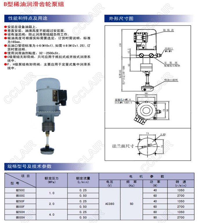 B250C,B500C,B250F,B500F,B250H,B500H,稀油潤滑齒輪泵組