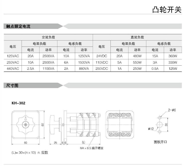 詳細(xì)信息 KH-302V-2,KH-302V-3,KH-302V-33,KH-302CL-1,KH-302A-2,KH-302A-3,KH-302A-33,KH-302C-1,Koino凸輪開關(guān)