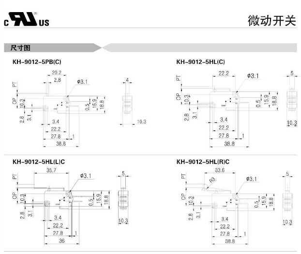 KH-9012-5,KH-9012,KH-9012-5PBC,KH-9012-5HLC,KH-9012-HLC,KH-9012-HRLC,KH-9012-HRMC,Koino微動開關(guān)