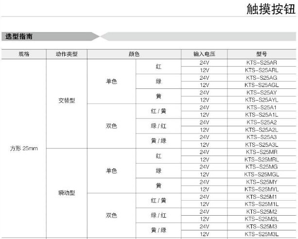 型號(hào): KTS-S25,KTS-S40,KTS-S25AR,KTS-S40AR,KTS-S40M3L,KTS-S25M3L,KTS-S25A2,KTS-S40A3L,Koino觸摸按鈕