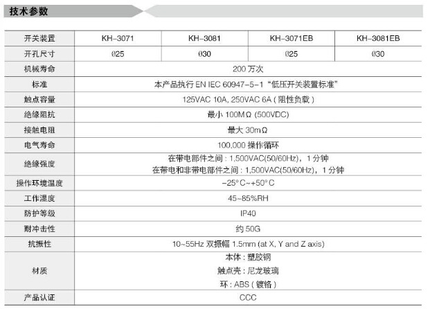 詳細(xì)信息 KH-3071,KH-3071EB,KH-3081,KH-3081EB,Koino按鈕開(kāi)關(guān)