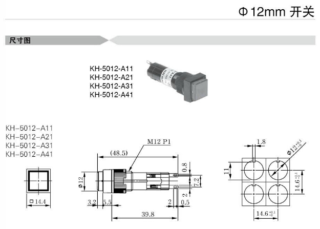 詳細(xì)信息 KH-5012-C00,KH-5012-C11,KH-5012-C21,KH-5012-A00,KH-5012-A11,KH-5012-A21,Koino Φ12mm開關(guān)