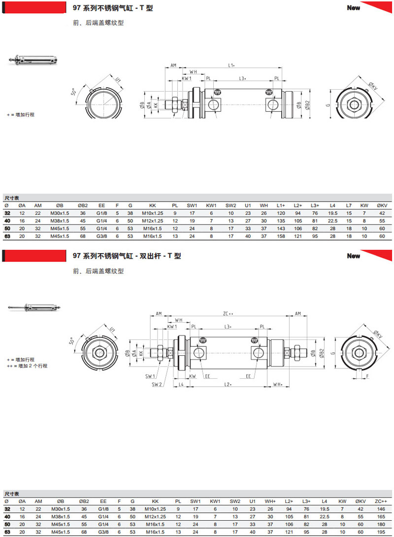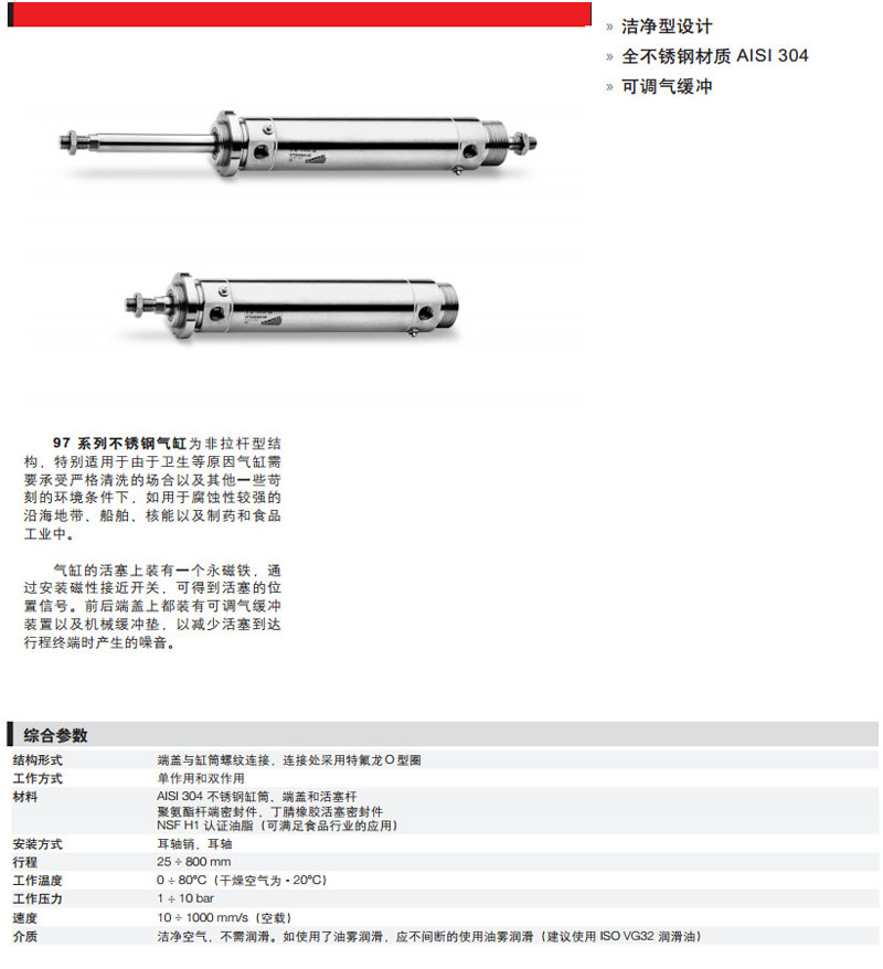 97M1A032A025,97M2A032A050,97M6A032A080,97M6A050A025camozzi氣缸