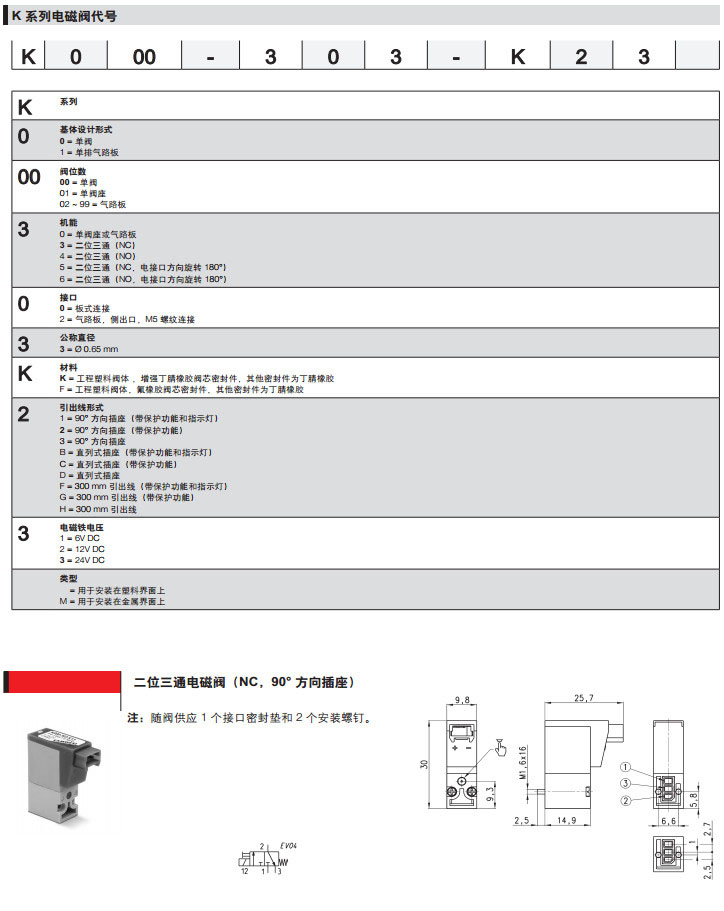 K000-003-K11,K001-023-KC2,K002-423-FH1,camozzi直動式微型電磁閥