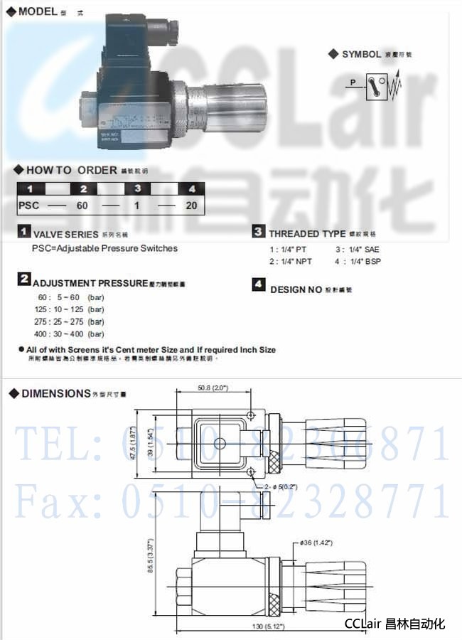 PSC-60-4-20,PSC-125-4-20,PSC-275-4-20,PSC-400-4-20,調整式壓力開關