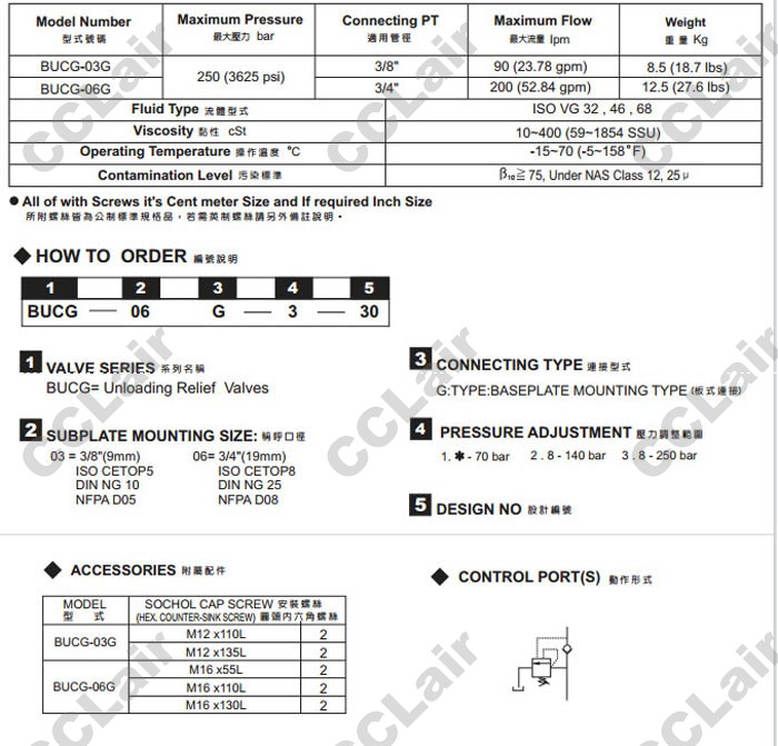 BUCG-03G-1-30,BUCG-06G-1-30,BUCG-03G-2-30,BUCG-06G-2-30,BUCG-03G-3-30,BUCG-06G-3-30,卸荷溢流閥,
