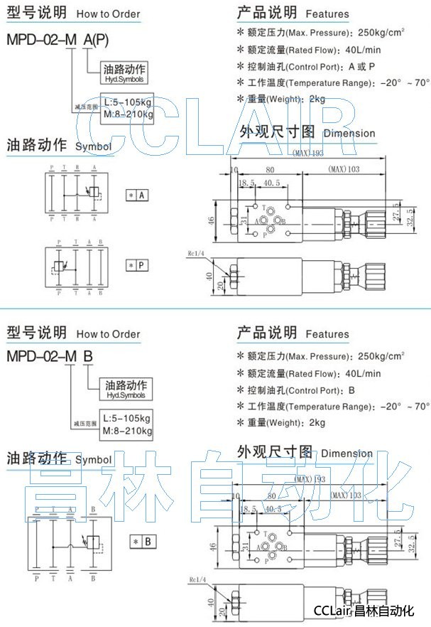 MPD-02-LA,MPD-02-MA,MPD-02-LB,MPD-02-MB,疊加式減壓閥