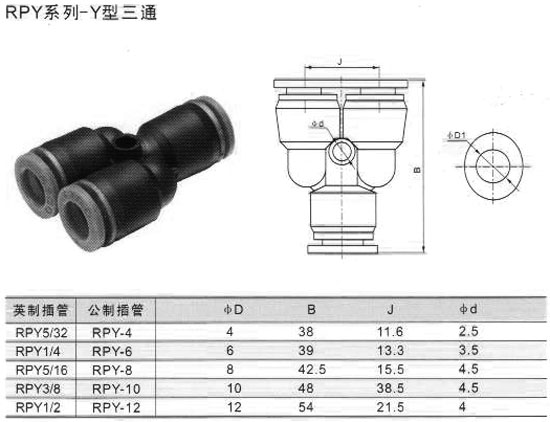 RPY5/32,RPY1/4,RPY5/16,RPY3/8,RPY1/2,RPY-4,RPY-6,RPY-8,RPY-10,RPY-12,Y型三通接頭