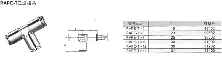 詳細(xì)信息 RAPE-T4,RAPE-T6,RAPE-T8,RAPE-T10,RAPE-T12,RAPE-T14,三通接頭
