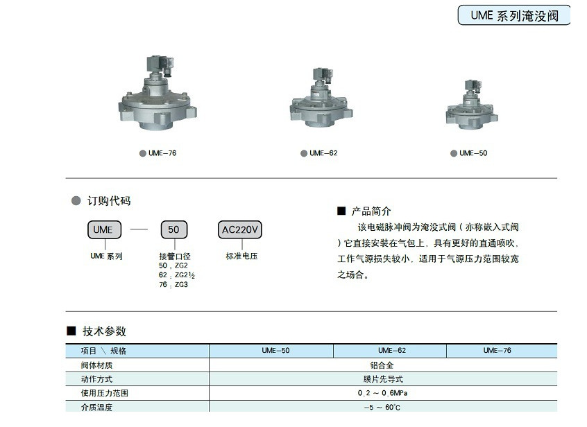 詳細(xì)信息 高原型淹沒式脈沖閥UME-50,UME-62,UME-76,