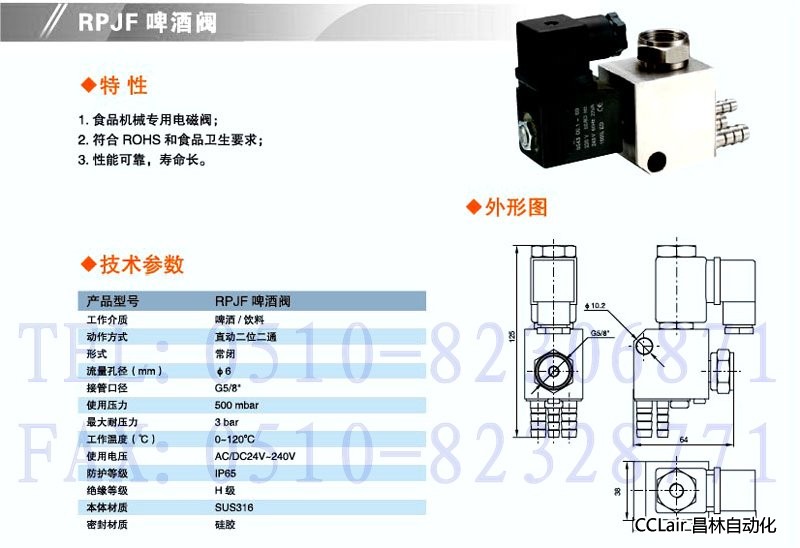 產品: 瀏覽次數:709RPJF,直動二位二通啤酒閥