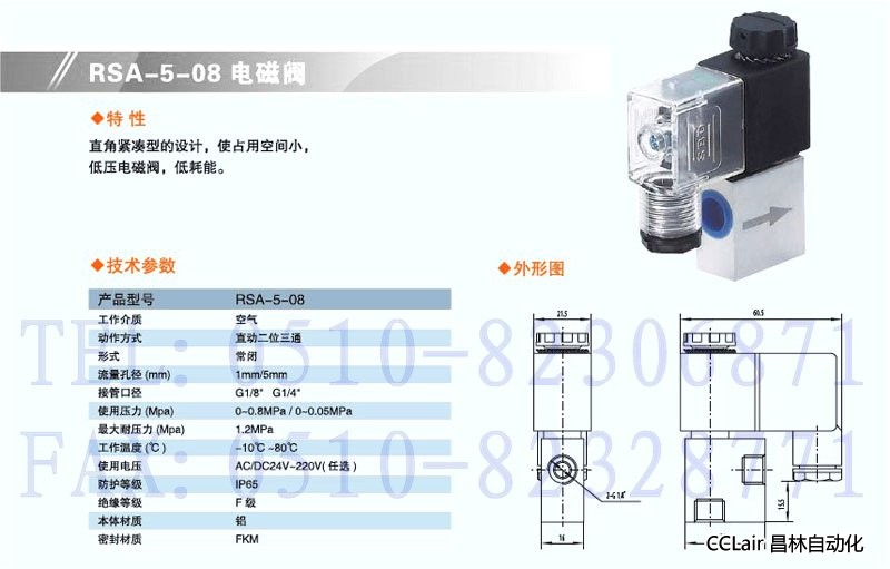 產(chǎn)品: 瀏覽次數(shù):501RSA-5-08,直動二位三通電磁閥