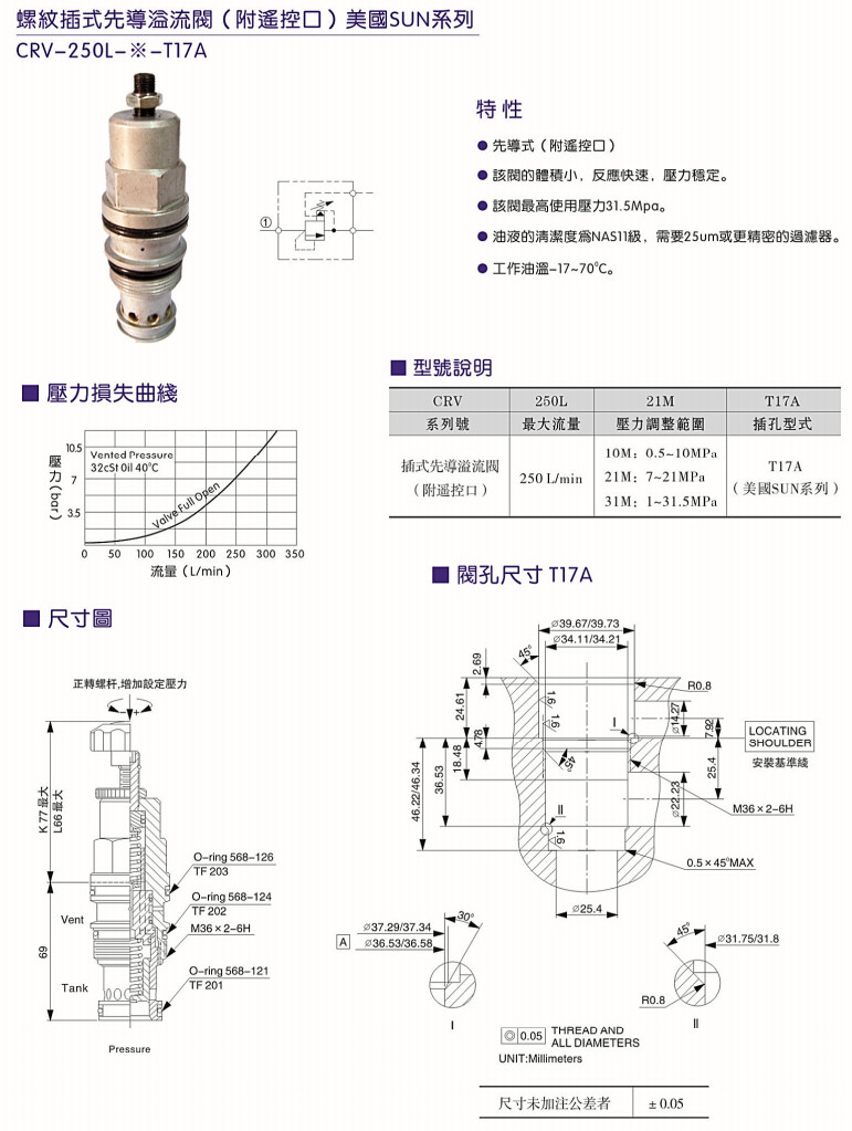 CRV-250L-10M-T17A,CRV-250L-21M-T17A,CRV-250L-31M-T17A,螺紋插式先導溢流閥