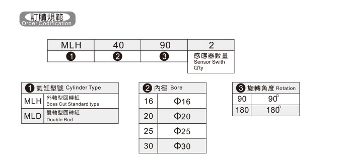 回轉(zhuǎn)氣缸 MLH16-90,MLH16-180,MLH20-90,MLH20-180,MLH25-90,MLH25-180