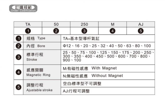 導桿氣缸 TA12-25M,TA12-50M,TA12-75M,TA12-100M,TA12-125M,TA12-150M,TA12-175M,TA12-200M