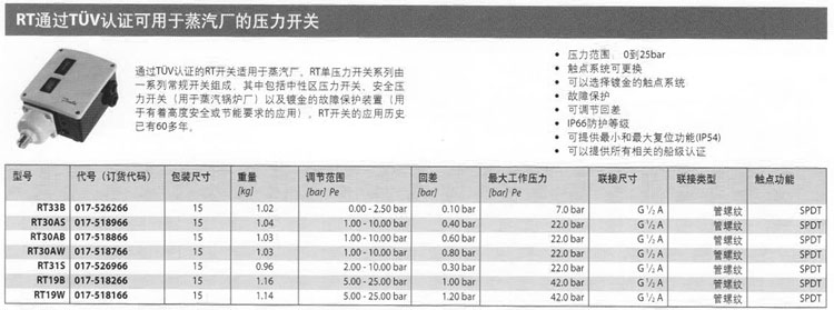 RT33B,RT30AS,RT30AB,RT30AW,RT31S,RT19B,RT19W,壓力開關(guān)