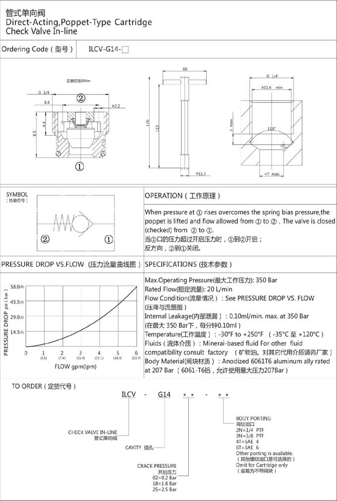 ILCV-G14-02,ILCV-G14-18,ILCV-G14-25,管式單向閥