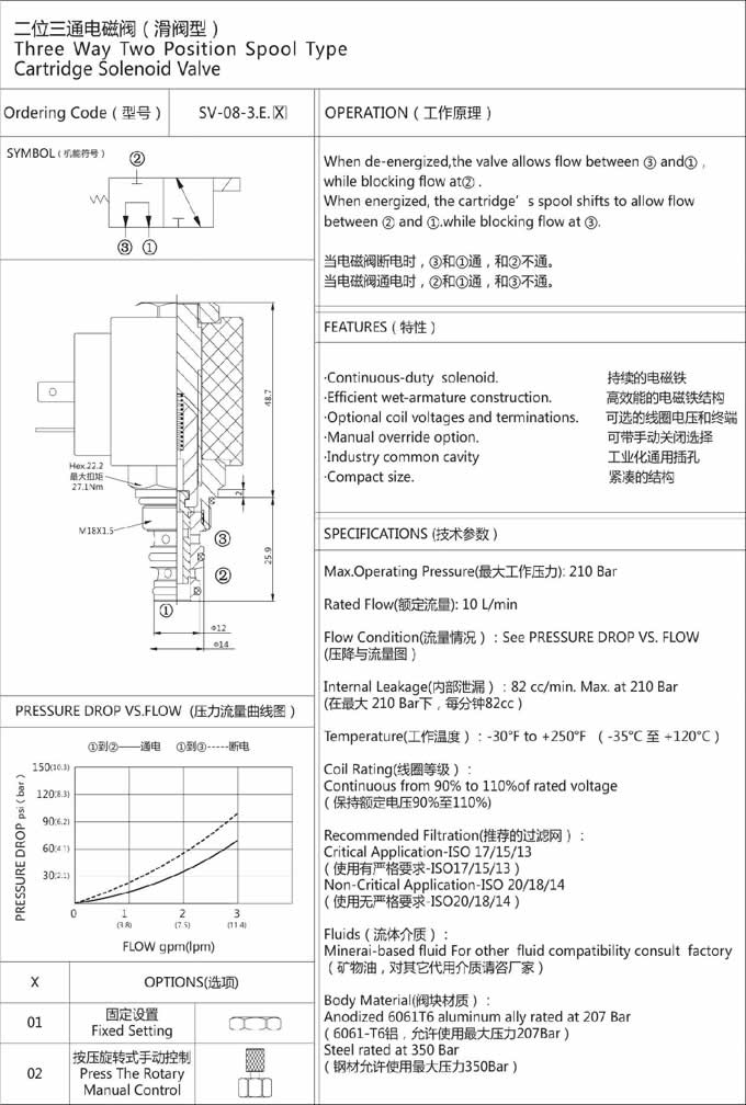 產(chǎn)品: 瀏覽次數(shù):389SV-08-3E,二位三通電磁閥