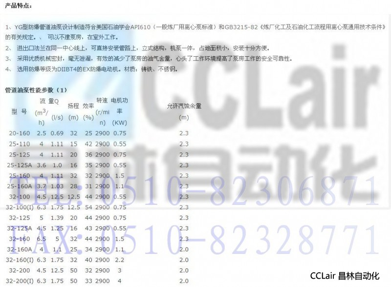 YG65-160,YG65-160A,YG65-160B,YG65-200,防爆管道式離心油泵