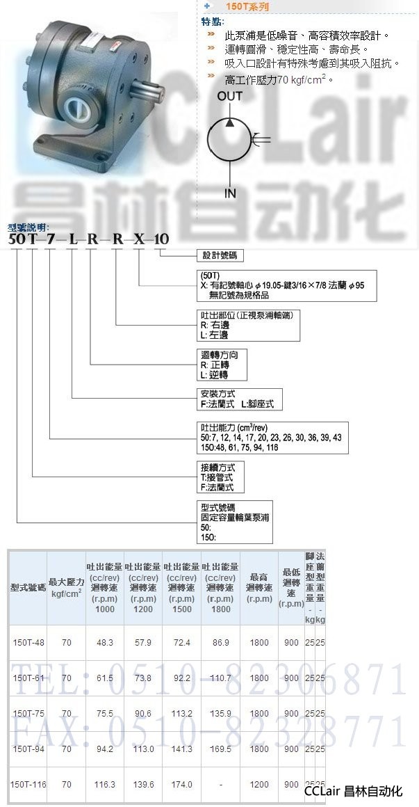 150T-48-L-R,150T-48-L-L,150T-48-F-R,150T-48-F-L,固定容量輪葉泵浦