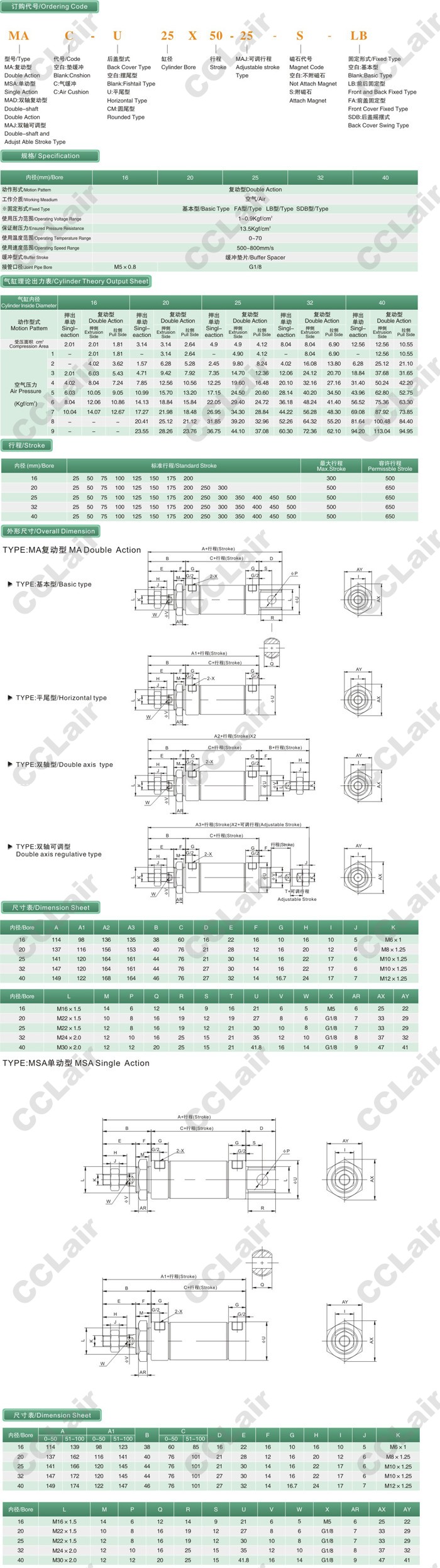 MAD-CM20×125,MAD-CM20×150,MAD-CM20×175,MAD-CM20×200,MAD-CM20×250,MAD-CM20×300,MAD-CM25×25,MAD-CM25×50,
