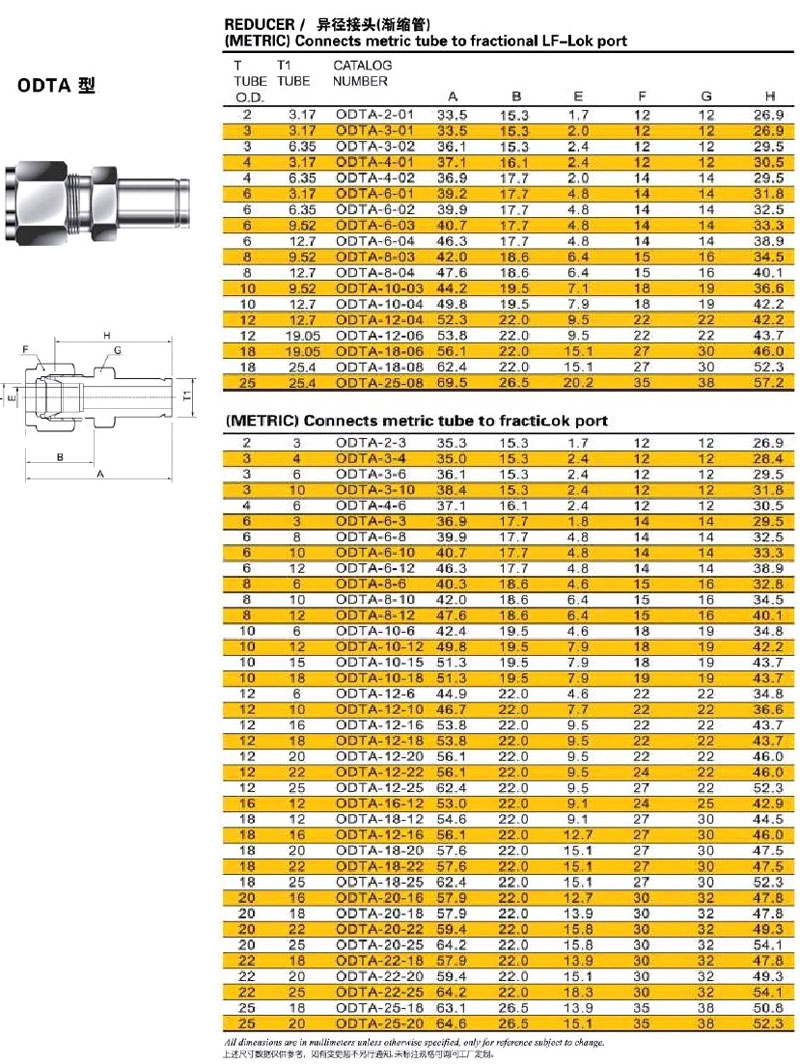 您當(dāng)前的位置: 首頁(yè) » 產(chǎn)品&解決方案 » ODTA-2-01,ODTA-3-01,ODTA-2-3,ODTA-3-4,ODTA-6-01,ODTA-20-18,異徑接頭