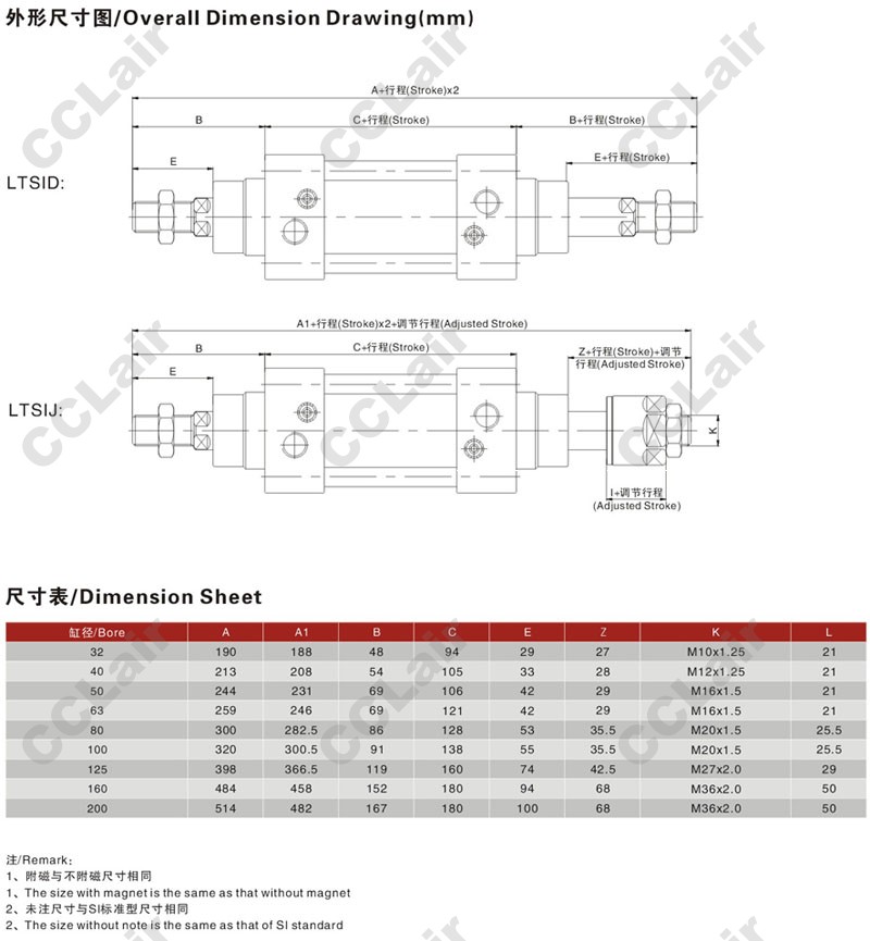 LTSI-32,LTSI-40,LTSI-50,LTSI-63,LTSI80,LTSI100,LTSI100×100,LTSI-100-100,標(biāo)準(zhǔn)氣缸