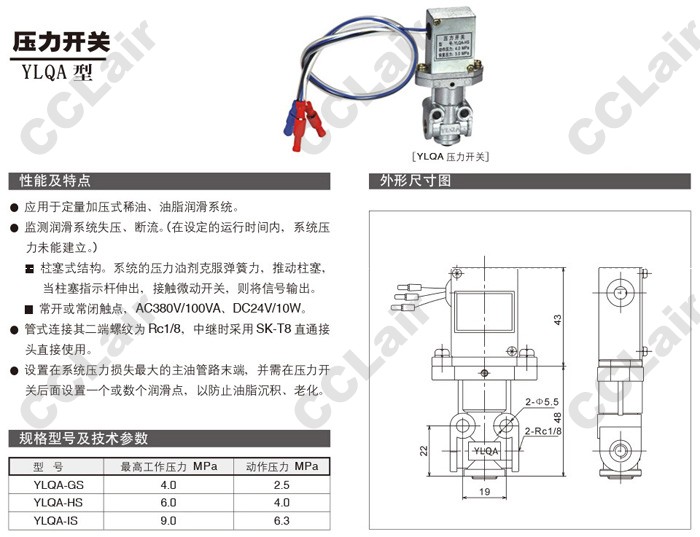 詳細(xì)信息 YLQA-GS,YLQA-HS,YLQA-IS,壓力開關(guān)