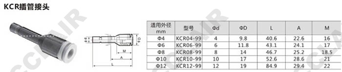 詳細信息 KCR04-99,KCR06-99,KCR08-99,KCR10-99,KCR12-99,插管接頭