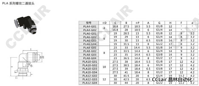 PLA4,PLA6,PLA8,PLA10,PLA12,螺紋二通接頭