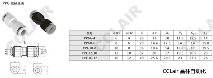 PPG6-4,PPG8-6,PPG10-8,PPG12-10,PPG16-12,減徑直通接頭