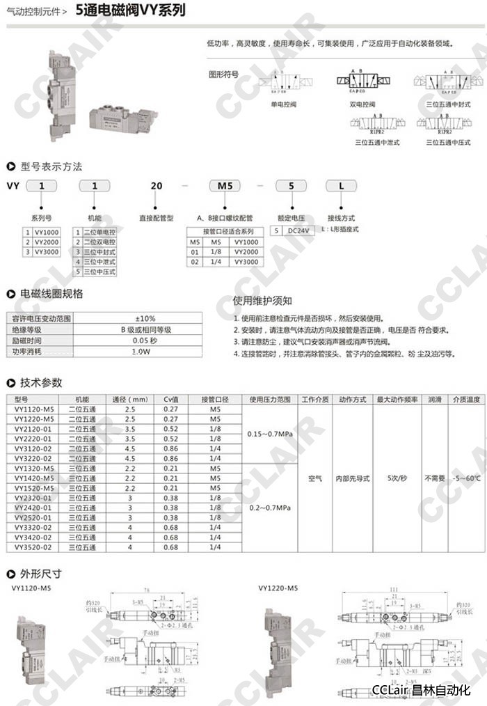 VY1120-M5,VY2120-M5,VY3120-M5,VY1220-M5,VY2220-M5,VY3220-M5,5通電磁閥
