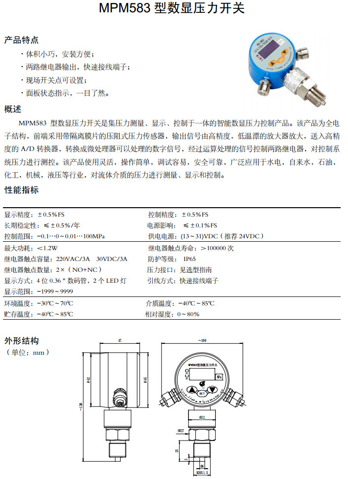 您當(dāng)前的位置:首頁(yè) » 產(chǎn)品&解決方案 » MPM583-0.1-11,MPM583-0-10,MPM583-0.01-00,MPM583-100-11,數(shù)顯壓力開關(guān)