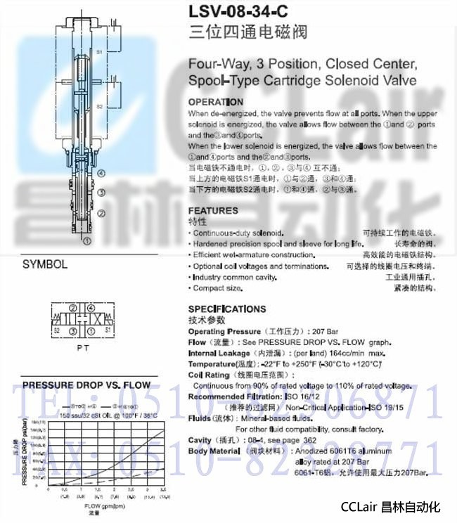 LSV-08-34C-3D,LSV-08-34C-3H,LSV-08-34C-3C,LSV-08-34C-3S,三位四通電磁閥,