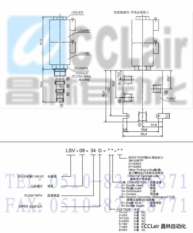 LSV-08-34O-8D,LSV-08-34O-8H,LSV-08-34O-8O,LSV-08-34O-8S,三位四通電磁閥,
