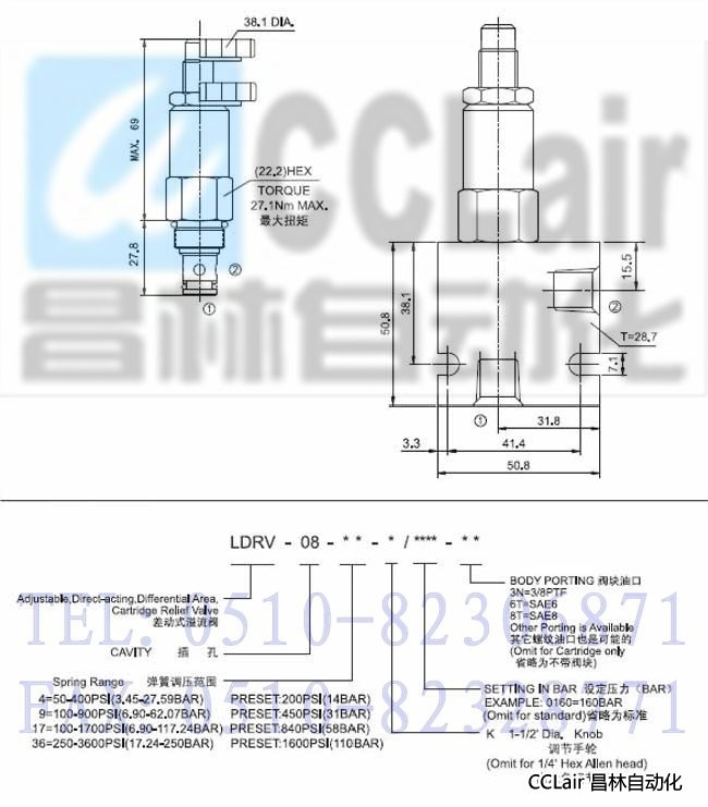 » LDRV-08-4-K-3N,LDRV-08-4-K-8T,LDRV-08-4-K-6T,差動式溢流閥,