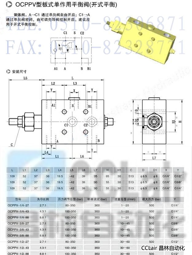 OCPPV-1/4-27,OCPPV-1/4-43,OCPPV-1/4-88,板式單作用平衡閥(開式平衡)