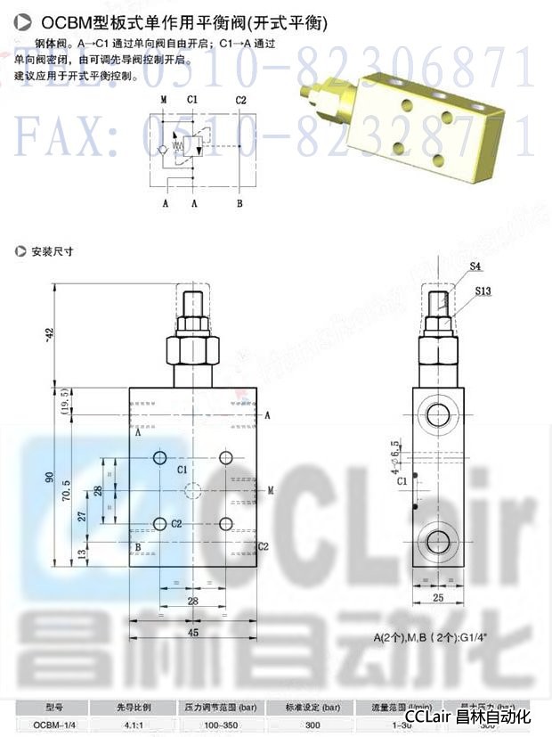 詳細(xì)信息 OCBM-1/4,板式單作用平衡閥(開式平衡)