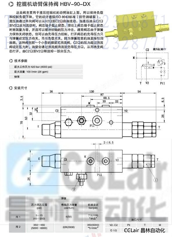 HBV-90-DX,挖掘機動臂保持閥