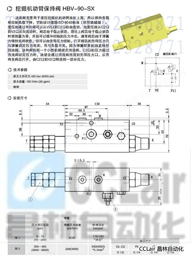 產(chǎn)品: 瀏覽次數(shù):382HBV-90-SX,挖掘機動臂保持閥