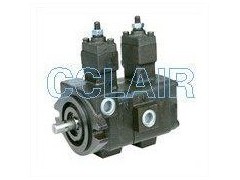 2臺可變?nèi)萘枯喨~幫浦連結成一體,以1臺電動馬達直接驅動之。從2臺可變?nèi)萘枯喨~幫浦的吐出油量,可以個別供給各自的油路。以驅動作動器。亦可驅動同一作動器,其最大特長為同一軸可驅動兩個可變?nèi)萘枯喨~幫浦節(jié)省空間,及同一回路內(nèi),可以很簡單地得到高低兩種壓力。