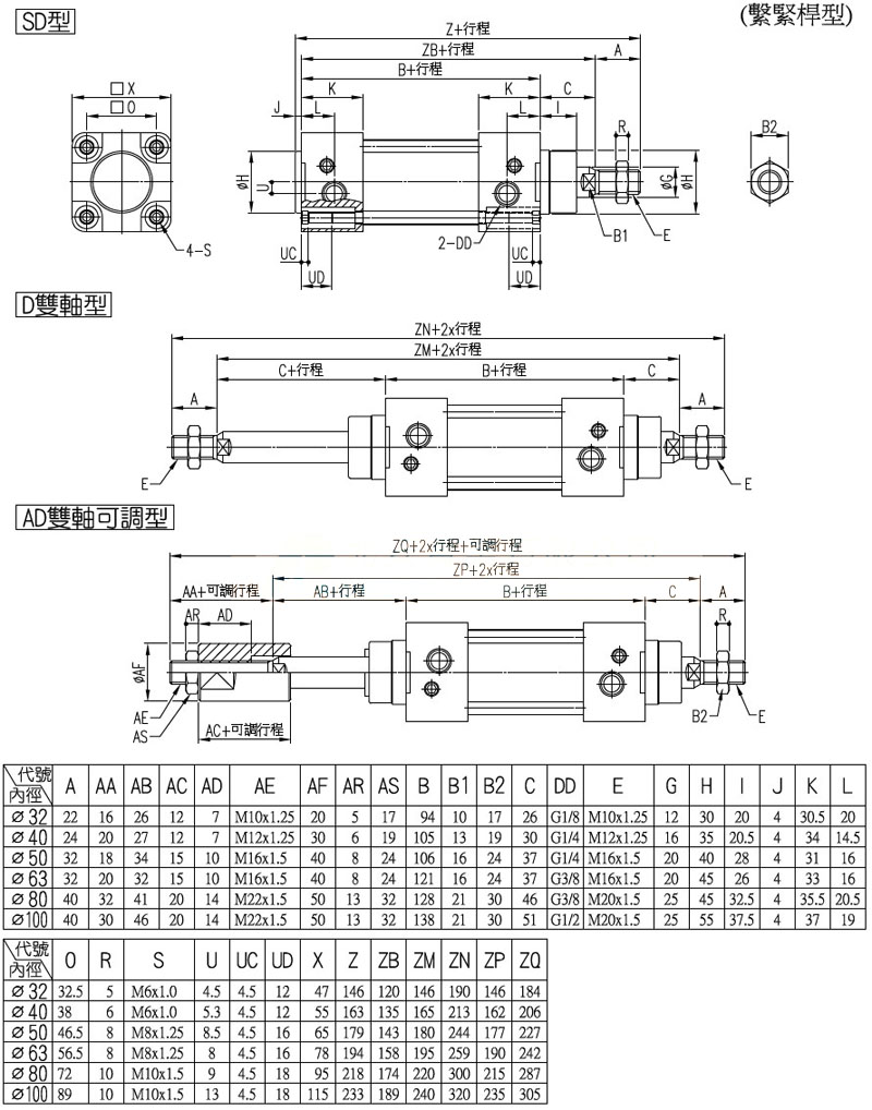 PCQV2-AD-SD-32*100,PCQV2-AD-SD-40*100,PCQV2-AD-SD-50*100,PCQV2-AD-SD-63*100,