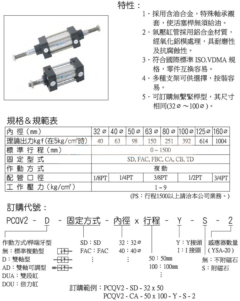 PCQV2-AD-SD-32*500,PCQV2-AD-SD-40*500,PCQV2-AD-SD-50*500,PCQV2-AD-SD-63*500,