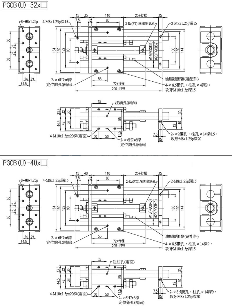 型號: PTMB-20,PTMU-32,PGCB-20,PGCU-32,PTMB-40,PGCB-40,panix輕負(fù)荷導(dǎo)桿氣缸