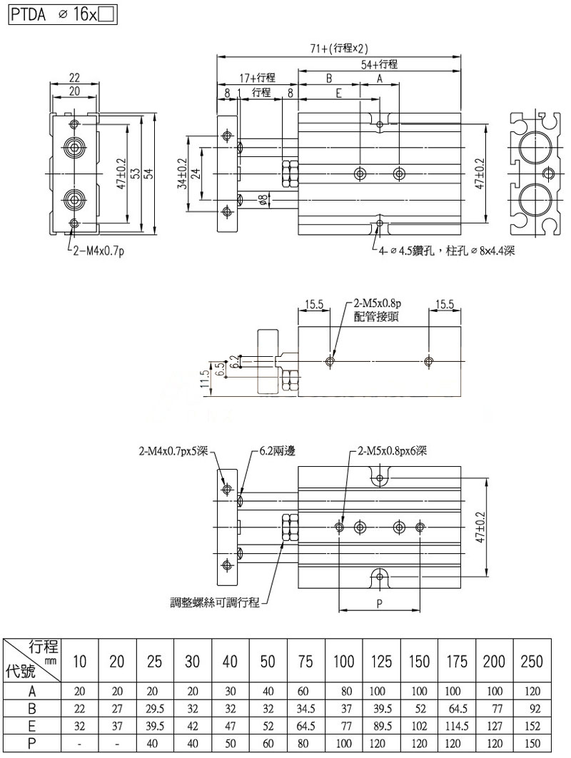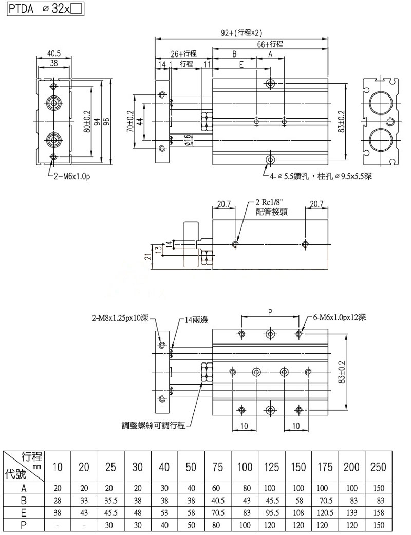 PTDA-32*150-S-2,PTDA-32*175-S-2,PTDA-32*200-S-2,PTDA-32*250-S-2,