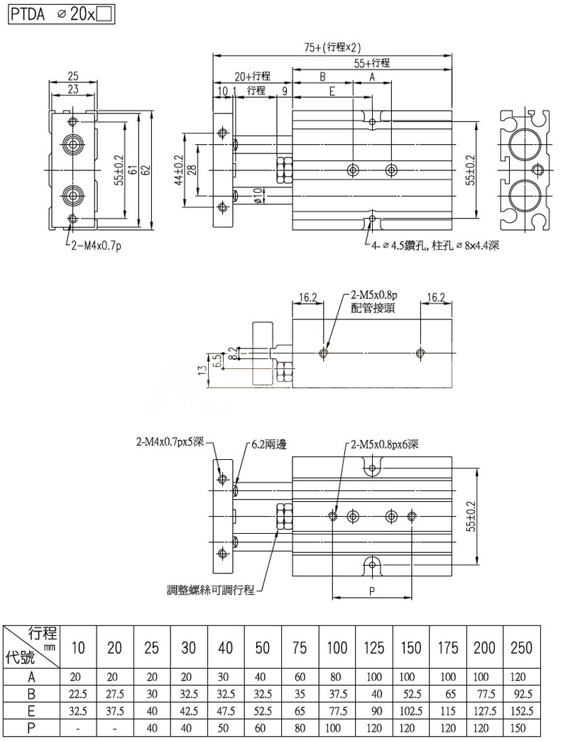 PTDA-20*150,PTDA-20*175,PTDA-20*200,PTDA-20*250,
