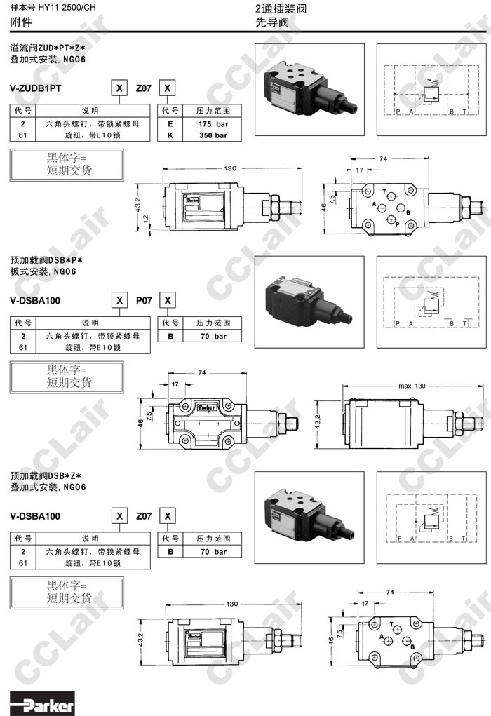 V-DSBA1002P07B,V-DSBA10061P07B,Parker2通插裝加載閥