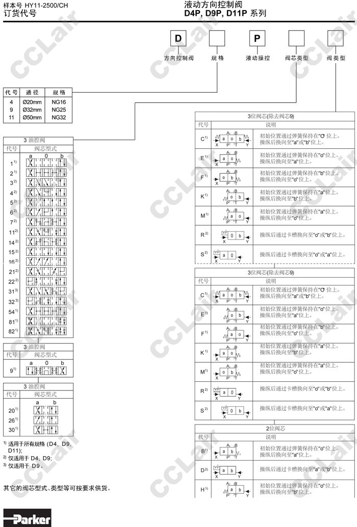 D4P,D9P,D11P,D4P1C2N,D9P1C2N,D11P1E2N,D4P1C2V,D9P1C2V,D11P1E2V,Parker液動方向控制閥