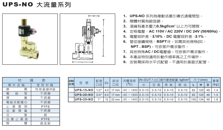 UPS-15-NO,UPS-20-NO,UPS-25-NO,UNI-D大流量電磁閥