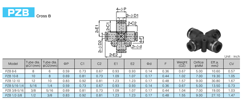 PZB8-6,PZB10-8,PZB12-10,PZB5/16-1/4,PZB3/8-5/16,PZB1/2-3/8,PISCO快速接頭